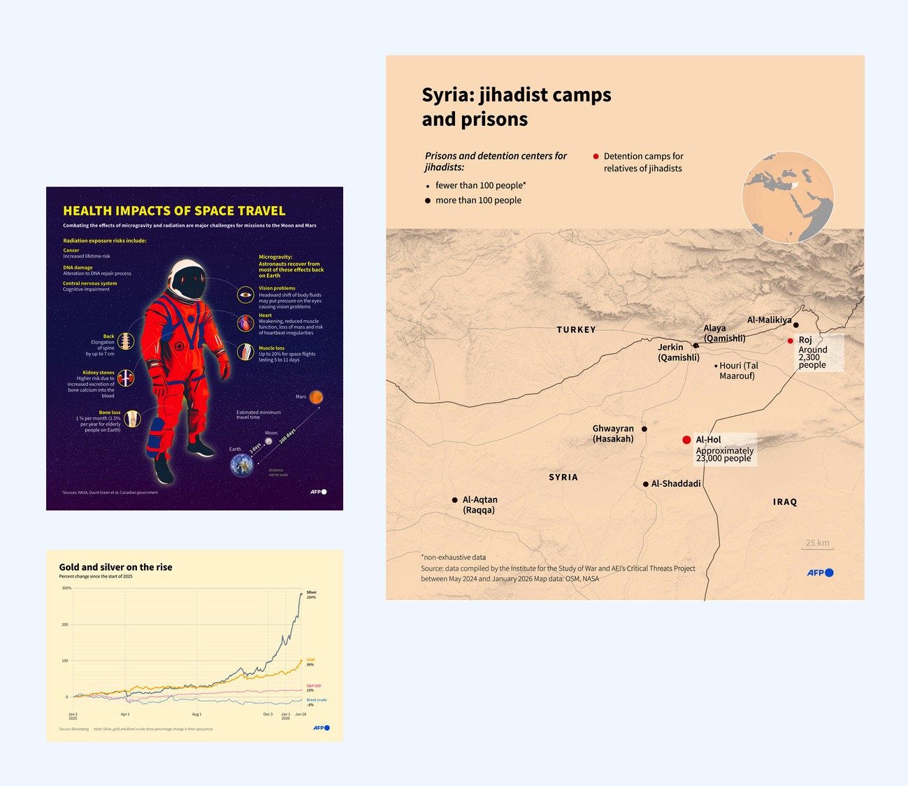 The Graphics department works directly with AFP’s editorial departments to provide the top news stories in illustrated format.