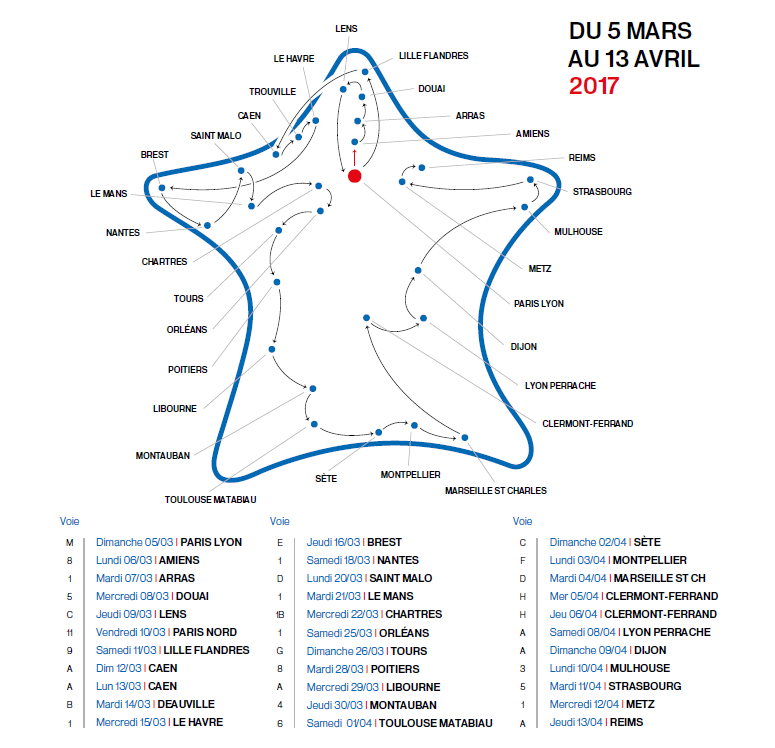 Initié par France Télévisions, Radio France, France Médias Monde, l’INA, le Groupe Randstad France et la SNCF, et avec le soutien de la Documentation française et de l'AFP,  le Train de la Présidentielle 2017 se rendra à la rencontre des citoyens en parcourant 31 villes de France.