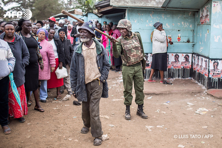 9 août 2017 – Kenya, Nairobi - La mère d’un homme abattu par les forces de police recouvre le corps de son fils dans une rue du bidonville de Mathare. © MARCO LONGARI / AFP PHOTO