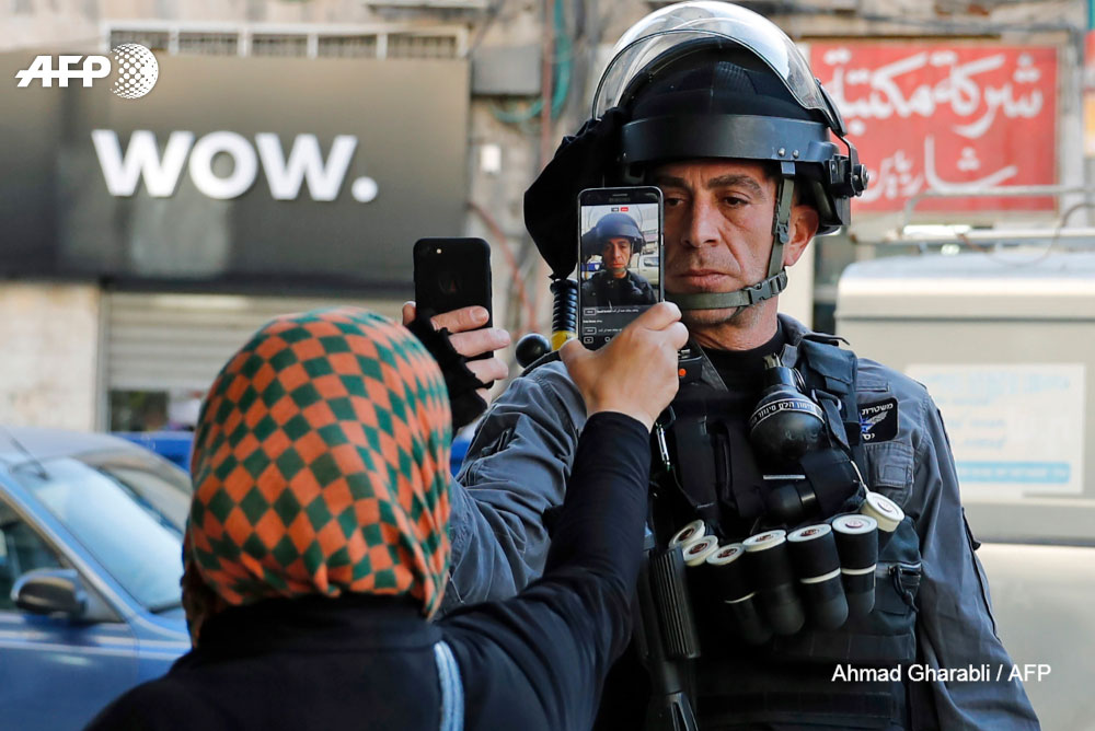 Ahmad Gharabli se voit décerner le prix du «Picture of the Year» pour son cliché montrant une Palestinienne et un membre des forces de sécurité israéliennes se prenant mutuellement en photo avec un téléphone portable lors d’une manifestation à Jérusalem, en décembre 2017.