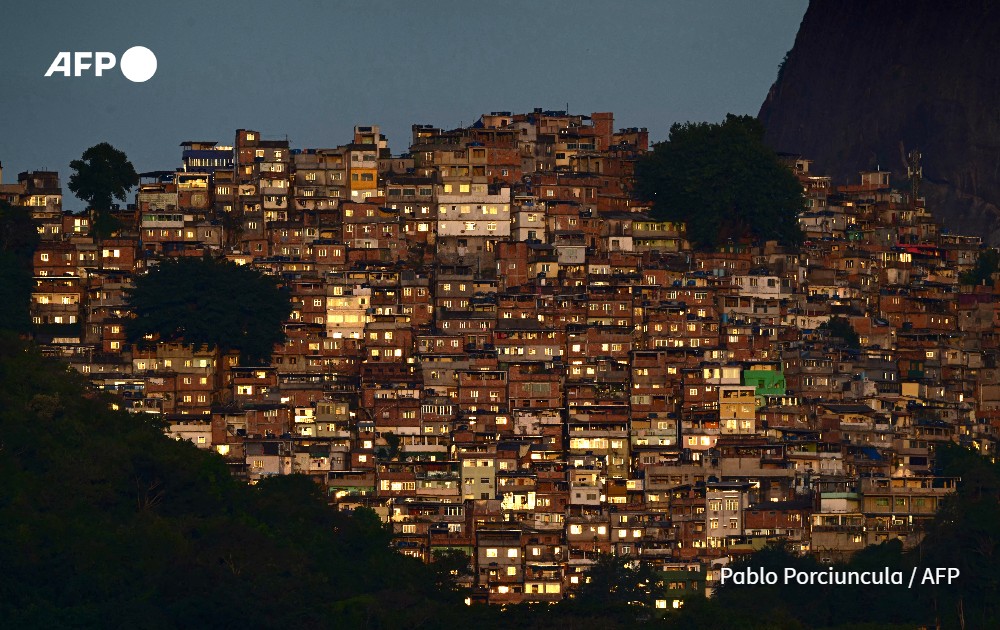 View of Rocinha Favela (shantytown) at sunrise in Rio de Janeiro, Brazil, on 23 June 2024.